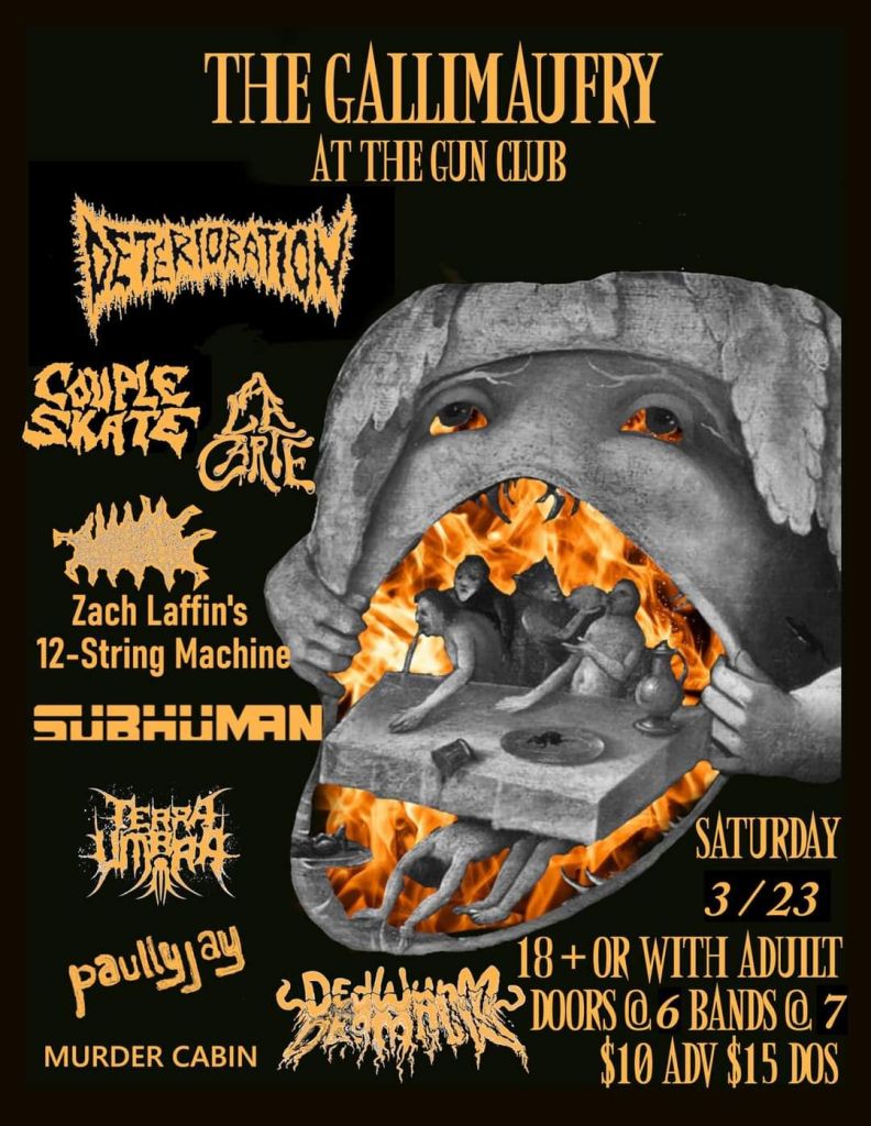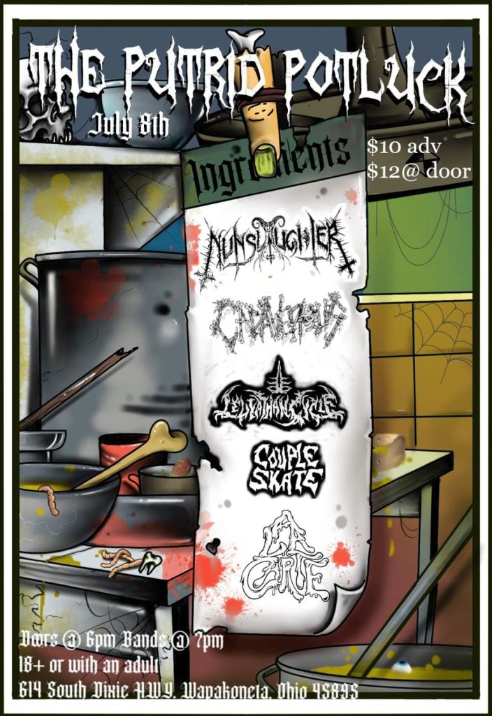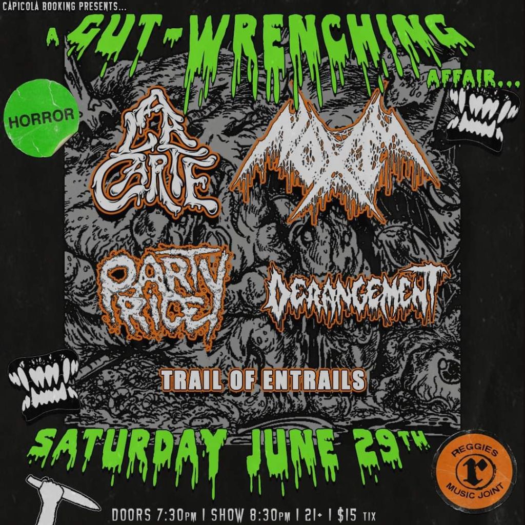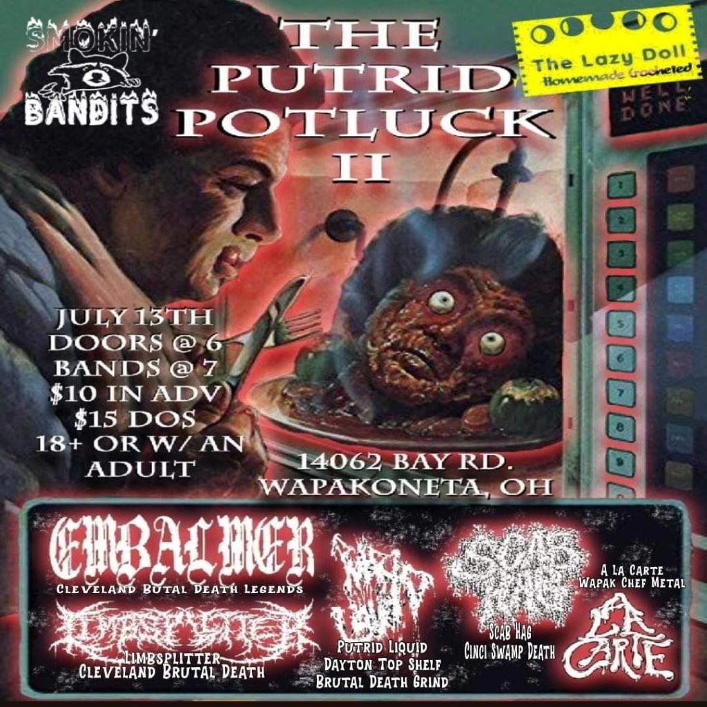 The table is set for an over-the-top, gruesome death metal dining experience you won’t want to forget. “Born to Entertain” is Wapakoneta, Ohio’s morbid culinary death metal trio, A La Carte’s sophomore full-length album. Twelve tracks of meaty death metal, coated with a layer of creamy grind, and served with a splash of thrash. Gore-fueled dishes are masterfully crafted to obliterate your ears and taste buds. Artwork by Eder Hernandez. Recorded at Phaze Studios in Dayton, OH. Mixed and mastered by Rylie Ellen Wechta (Guttural Secrete) at Sound Horizon Studios in Las Vegas, NV. FFO: Macabre, Impaled, Skinless, GWAR.